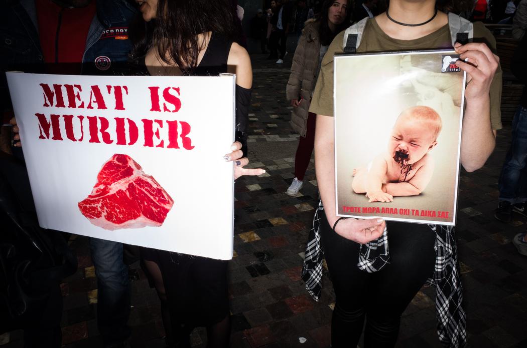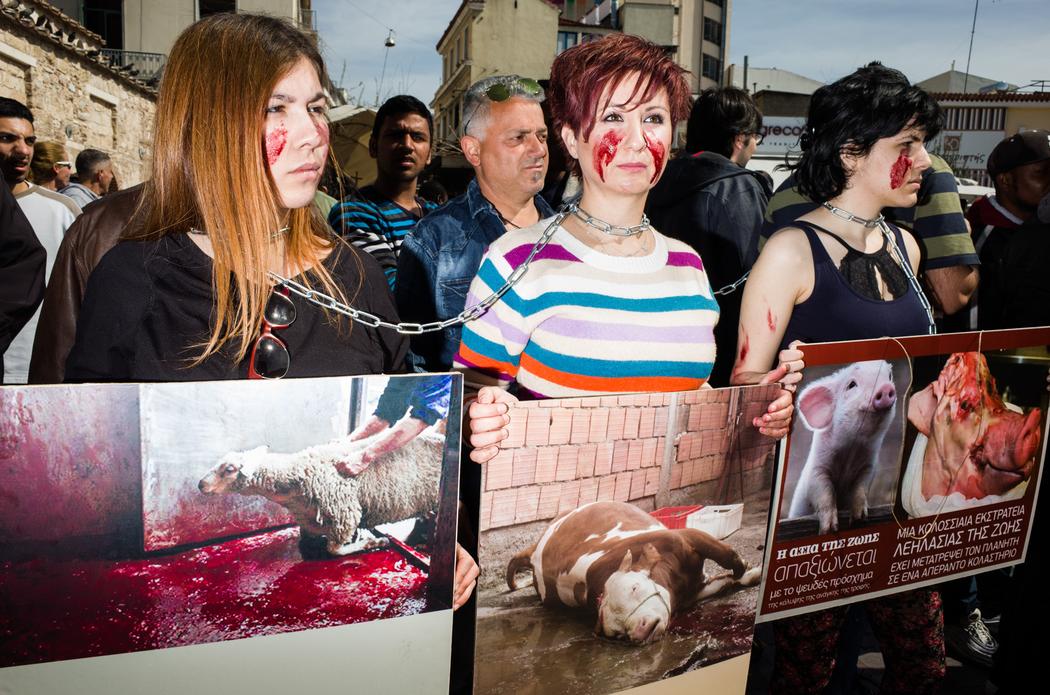 Τον τελευταίο καιρό, η Ελλάδα βιώνει τον πόλεμο μεταξύ των ελλήνων αντιεξουσιαστών-αντισπισιστών που μάχονται υπέρ των δικαιωμάτων των ζώων και των κρεοπωλείων-ιχθυοπολείων. Οι πρωτοι σπάζουν κρεοπωλεία ή πετούν μπογιές στις βιτρίνες υπερασπιζόμενοι τα δικαίωμα των ζώων στη ζωή