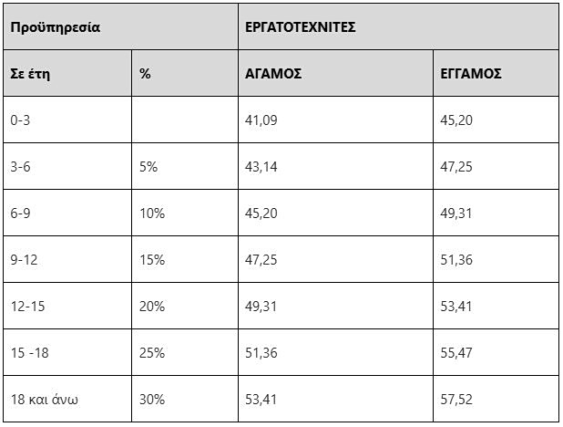 · Το επίδομα των τριετιών (10%-30% στον βασικό μισθό και 5% -30% στον βασικό μισθό των ημερομισθίων αντίστοιχα) και